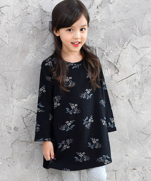 Bee ビーデスビー のファッション 裏起毛 Bee Aライン 長袖ワンピース ワンピース Aライン セール 総花柄 Des カラバリ